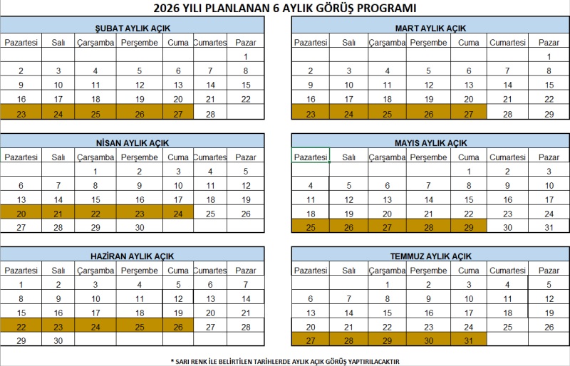 2026 YILI PLANLANAN 6 AYLIK GÖRÜŞ PROGRAMI
