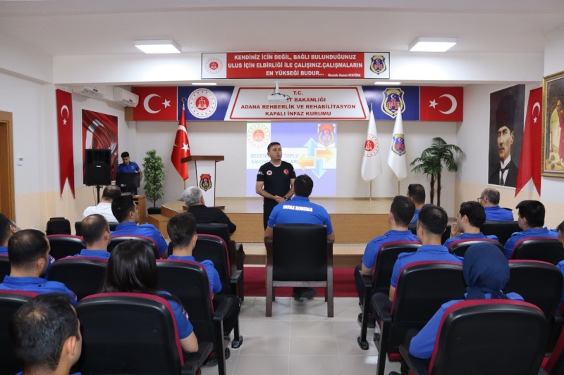 Kahramanmaraş Personel Eğitim Merkezinin düzenlemiş olduğu yerinde eğitim programı kapsamında Adana Rehberlik ve Rehabilitasyon Kapalı İnfaz Kurumumuzda, Ceza İnfaz Kurumlarında görev yapan personelin mesleki yeterliliklerini geliştirmek ve görevlerini uluslararası standartlar çerçevesinde icra edebilmelerini sağlamak amacıyla “Mesleki Müdahale Teknik ve Taktikleri (Yerinde Eğitim)” programı gerçekleştirilmiştir.